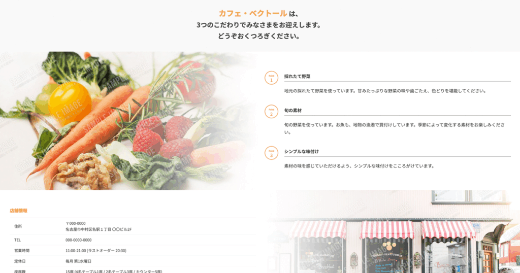 まず画像についてですが、あくまで参考とし、実際に公開されるサイトに合った画像に必ず差し替えてください。そしてテキストはある程度使っていただいても構いませんが、オリジナルのものにアレンジしていただくのが理想的です。
