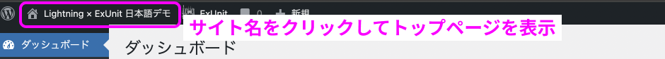 ダッシュボード上部のサイト名「Lightning × ExUnit 日本語デモ」をクリックするとトップページが表示されます。