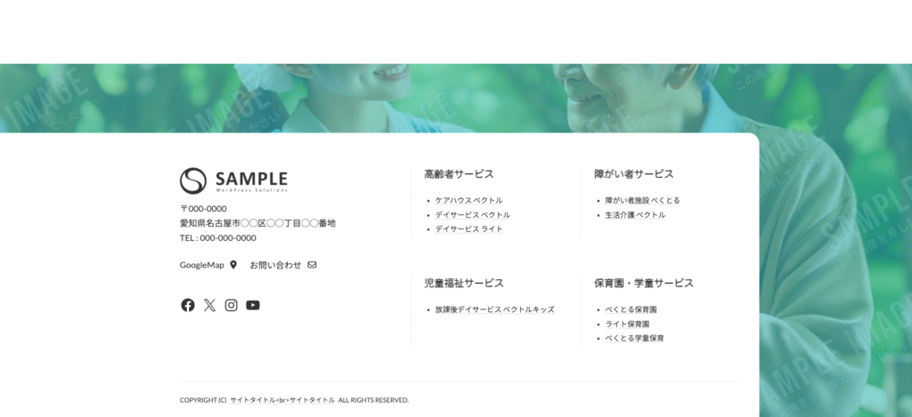 ブロックテンプレートパーツ機能でフッターを設置