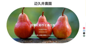 メニューのリンクはページ内でリンクするように、見出しブロックなどに「HTMLアンカー」を設置してリンクさせています。 - 「辺久市を知る」セクションの左側の丸い画像の下側の画像は、グループブロックにネガティブマージン(マイナスのマージン)を設置して、下に下げています。