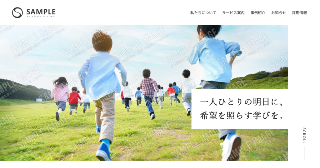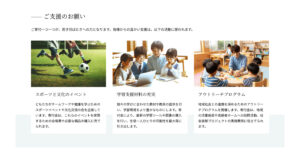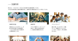 コピペで使える WordPress のブロックパターンライブラリ「NPO法人 フリースクール」のパターンです。