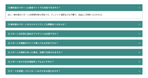 このパターンではテーマ「X-T9」「Lightning ( G3 / theme.json )」での使用を想定しています。他のテーマでは崩れる可能性がありますのでご注意ください。