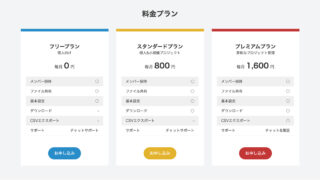 グリッドカラムカードブロックを使ったレイアウト例:料金プラン